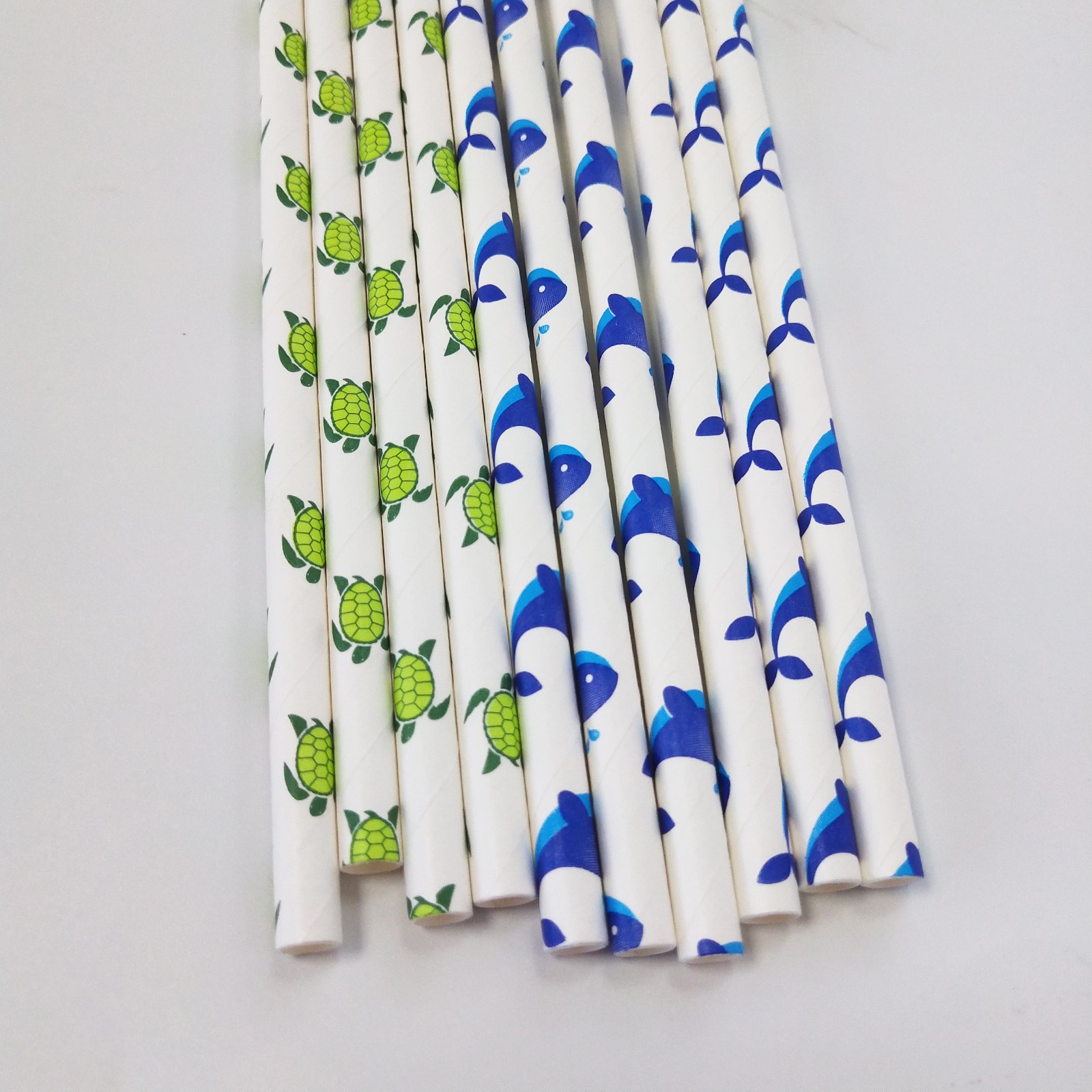 定制龟纹纸吸管是我们为一个海鲜餐厅客户定制的。任何你喜欢的图标,我们都可以用4色柔印机印刷出来。如果你正在寻找一个定制logo纸吸管制造商,我们是你最好的选择。